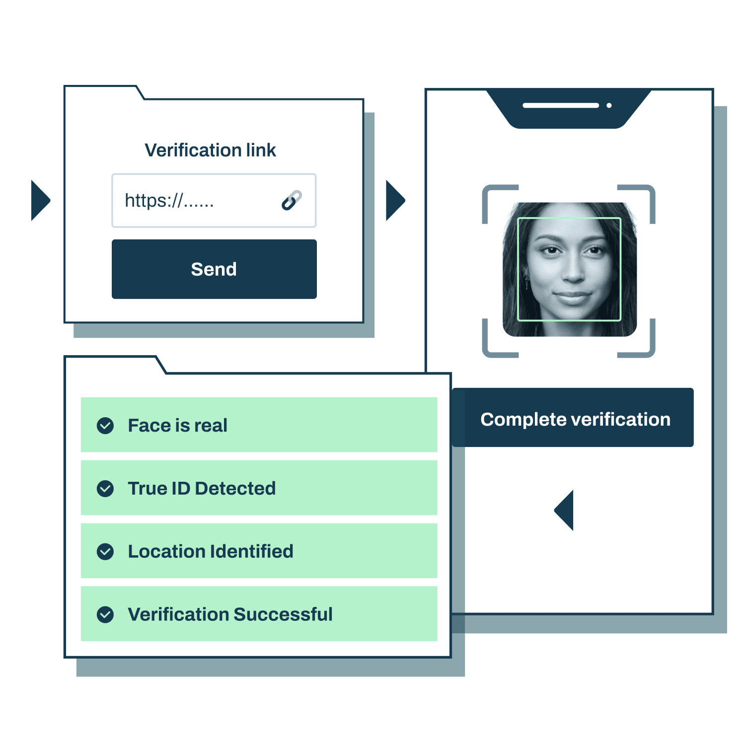 Using Cactus Verify’s tool, you can easily generate a magic link and send it to the person you want to verify. They will have to follow a two-stage verification process: